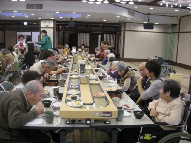 日頃お食事量の少ない方も、好きなお寿司が回って来るとご自分で皿をお取りになったりして