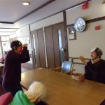 鬼は外!福は~内!!あさひが丘4階北東町で節分の豆まきをしました。「鬼を追っ払うから思いっきり投げてやっつけましょう」と言ってみましたが、優しい皆さんは豆を一つ二つ持ってポイッ。でも入居者様全員の力で無事ユニットから鬼は逃げて行きました。これでこの一年も、皆様の無病息災間違いなし。