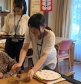 中部大学管理栄養科学科専攻の実習生として9月2日から6日までの1週間、特別養護老人ホームあさひが丘さんでお世話になりました。入居者の方とお話をしつつお昼ご飯の用意をし、おやつを作ったりもしました。2日目のおやつは私が考案した水まんじゅうでした。うまく作れるかという不安、そして食べていただけるかという心配もありましたが、皆さん美味しそうに食べていただけて嬉しかったです。今までご高齢の方と関わる機会があまり無く、お話しするのは緊張しましたが徐々に慣れ、少しずつ話せるようになっていきました。将来管理栄養士としてこのあさひが丘さんなどの特別養護老人ホームで働くことになれば、こういった年の離れた方とのコミュニケーション能力も必要になると思います。その練習や体験としても、この実習は貴重な経験となりました。多くの方のご協力のもと、行えたこの実習での経験を生かし、将来を見据えて勉学に励みます。